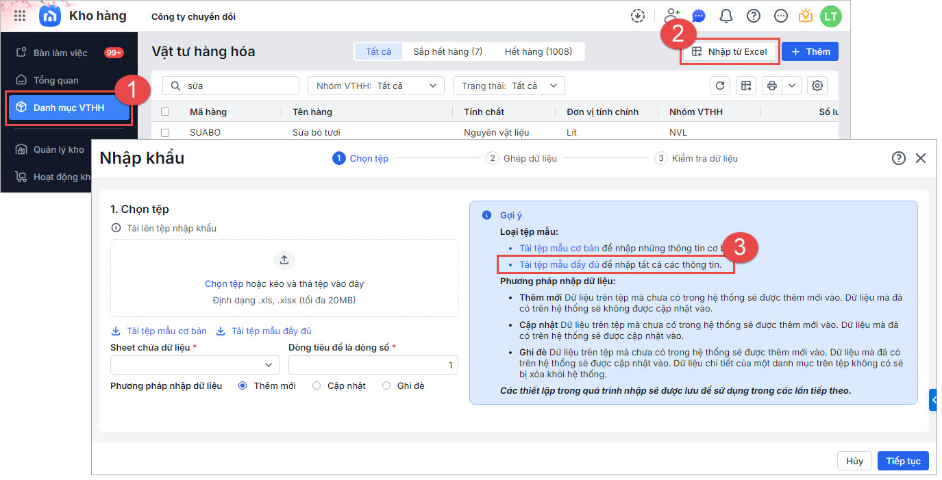Lưu ý: Anh/chị có thể khai báo nhanh tiêu chí chất lượng bằng cách nhập khẩu từ excel trên menu Danh mục VTHH (theo mẫu đầy đủ) tương tự theo hướng dẫn tại đây