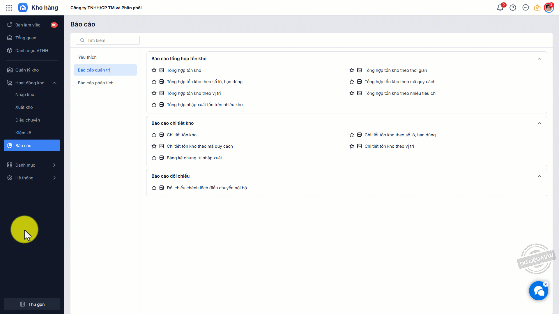 - Chọn kỳ báo cáo, chọn các kho muốn xem dữ liệu.