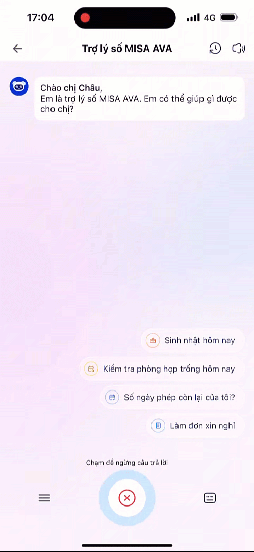 Anh/chị có thể vào trợ lý MISA AVA để hỏi về sinh nhật hôm nay và chuẩn bị lời chúc, gửi hàng loạt lời chúc cho đồng nghiệp một cách nhanh chóng.