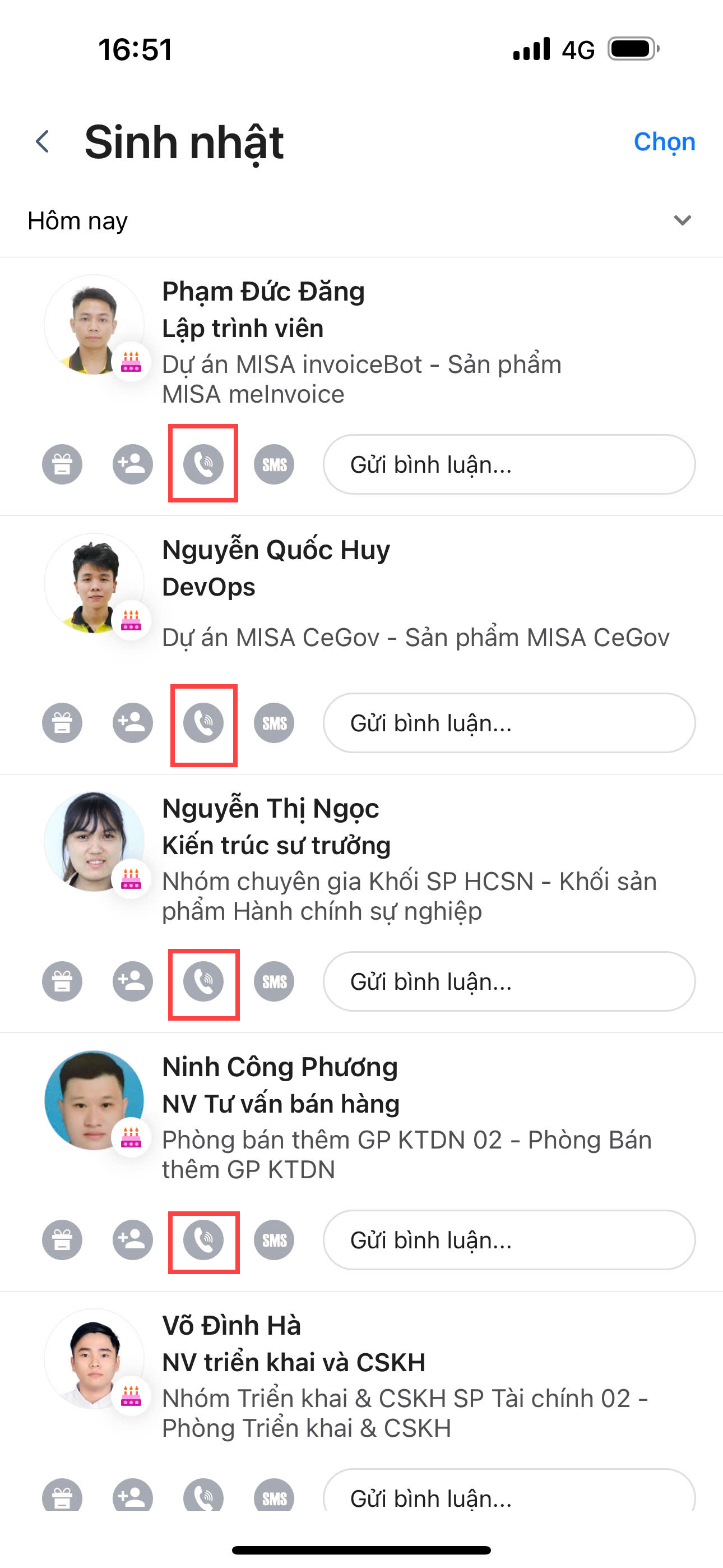 - Gọi điện: chọn icon điện thoại và gọi điện để chúc mừng sinh nhật qua số điện thoại.