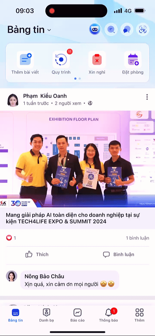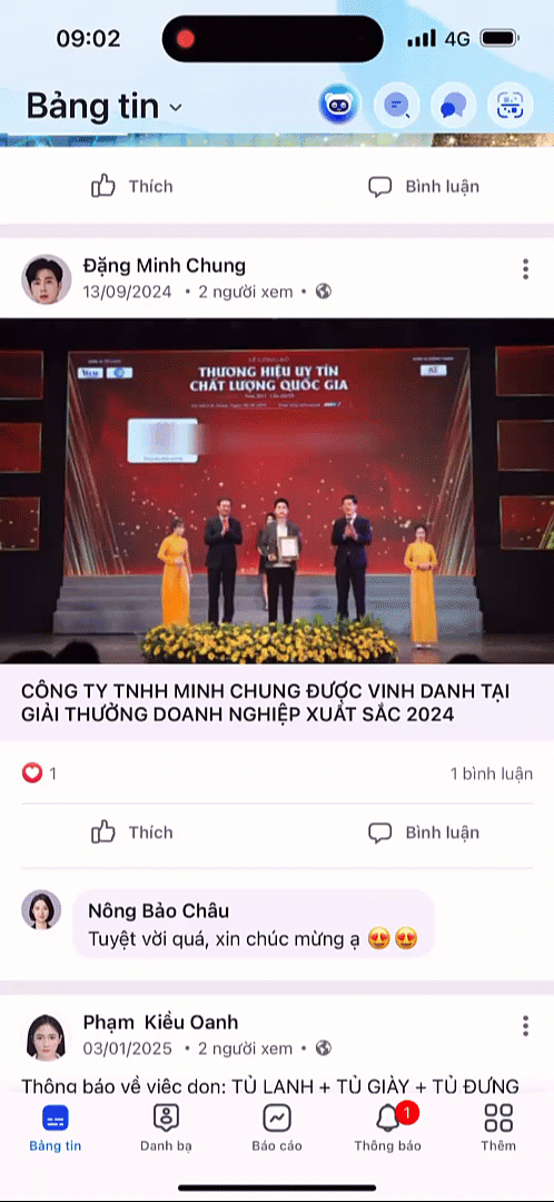 Để cập nhật thông tin và theo dõi nội dung của công ty, anh/chị vào mục Bảng tin sau đó lướt để xem những tin tức mới nhất.