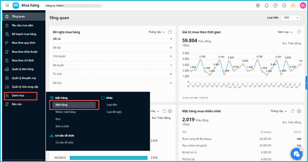 • Vào phân hệ Danh mục, chọn Mặt hàng
