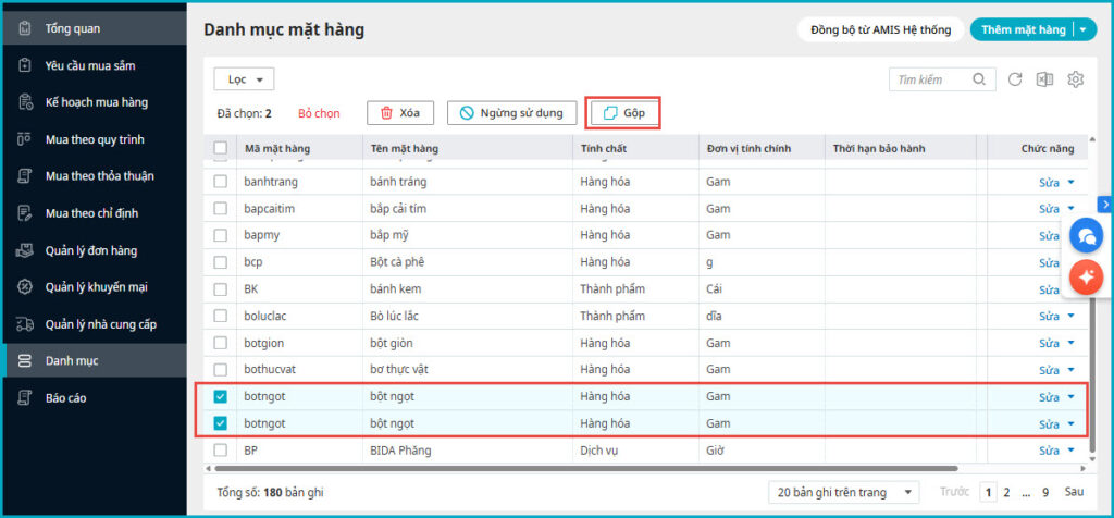 Mục đích bài viết: hướng dẫn gộp danh mục mặt hàng đẻ dễ dàng xử lý các danh mục bị trùng lặp.