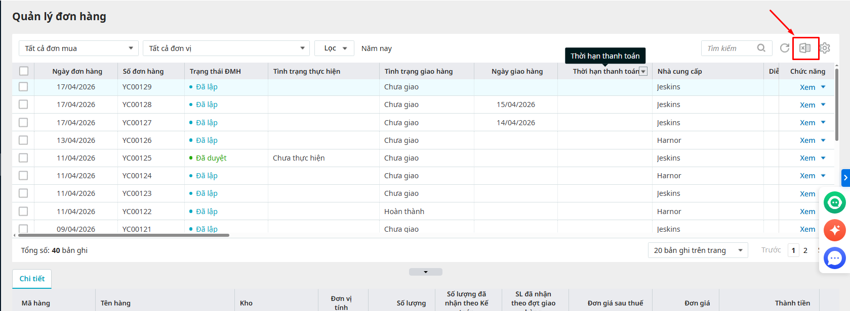 - Nhấn chọn biểu tượng xuất khẩu excel góc phải màn hình