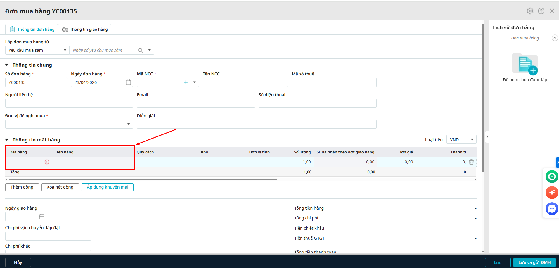 2. Tại sao khi lập chứng từ một số cột, trường thông tin bị bôi xám không thể điền/chọn được thông tin?
