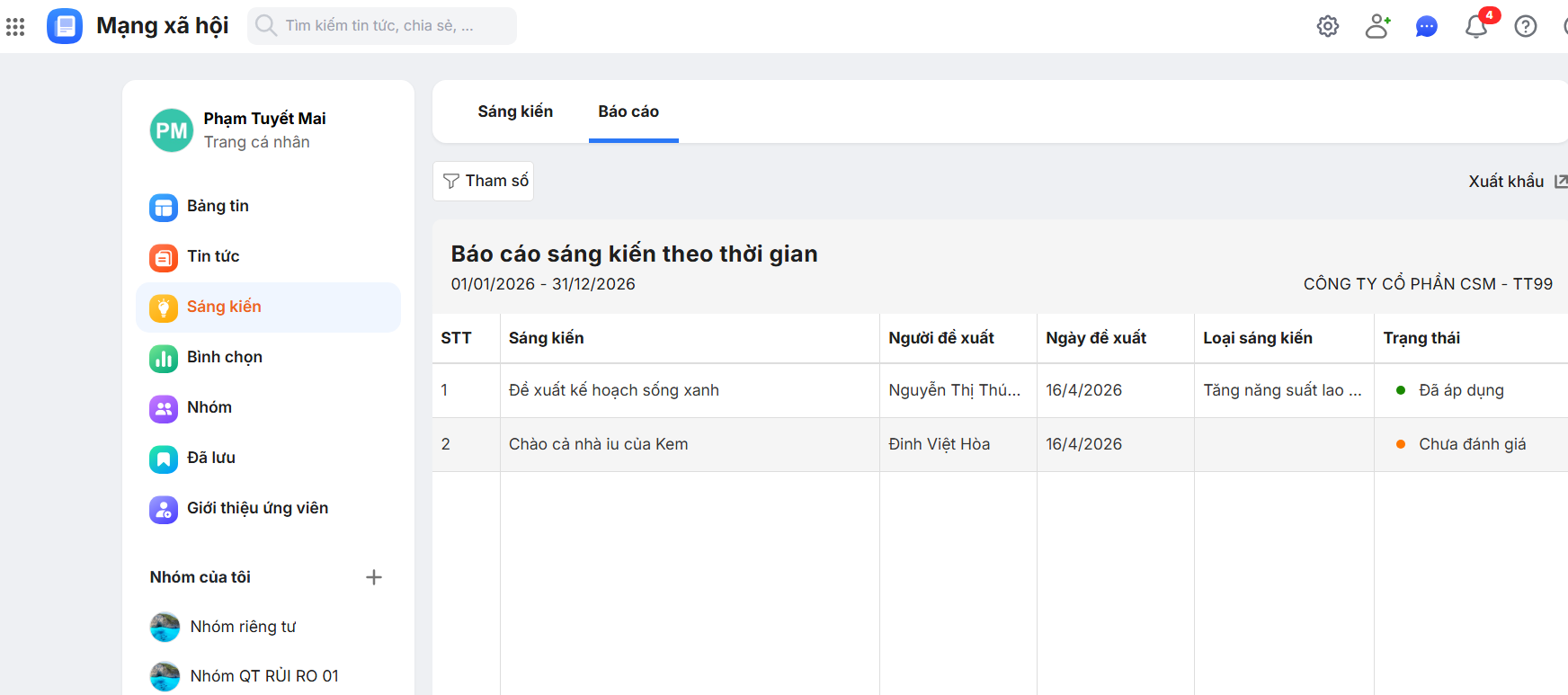 Bài viết hướng dẫn về tính năng xem báo cáo tổng hợp sáng kiến, giúp bộ phận quản lý dễ dàng theo dõi và đánh giá tình hình sáng kiến trong doanh nghiệp.