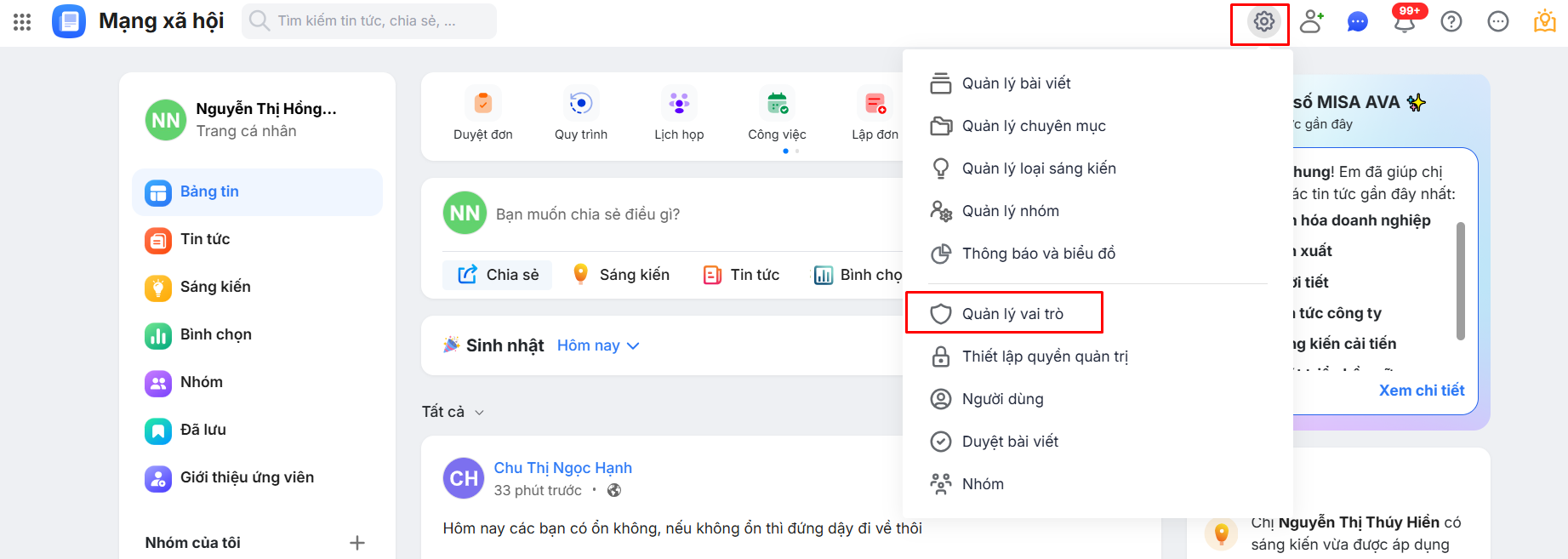 Chi tiết Hướng dẫn Thiết lập vai trò trong ứng dụng, vui lòng xem tại đây.