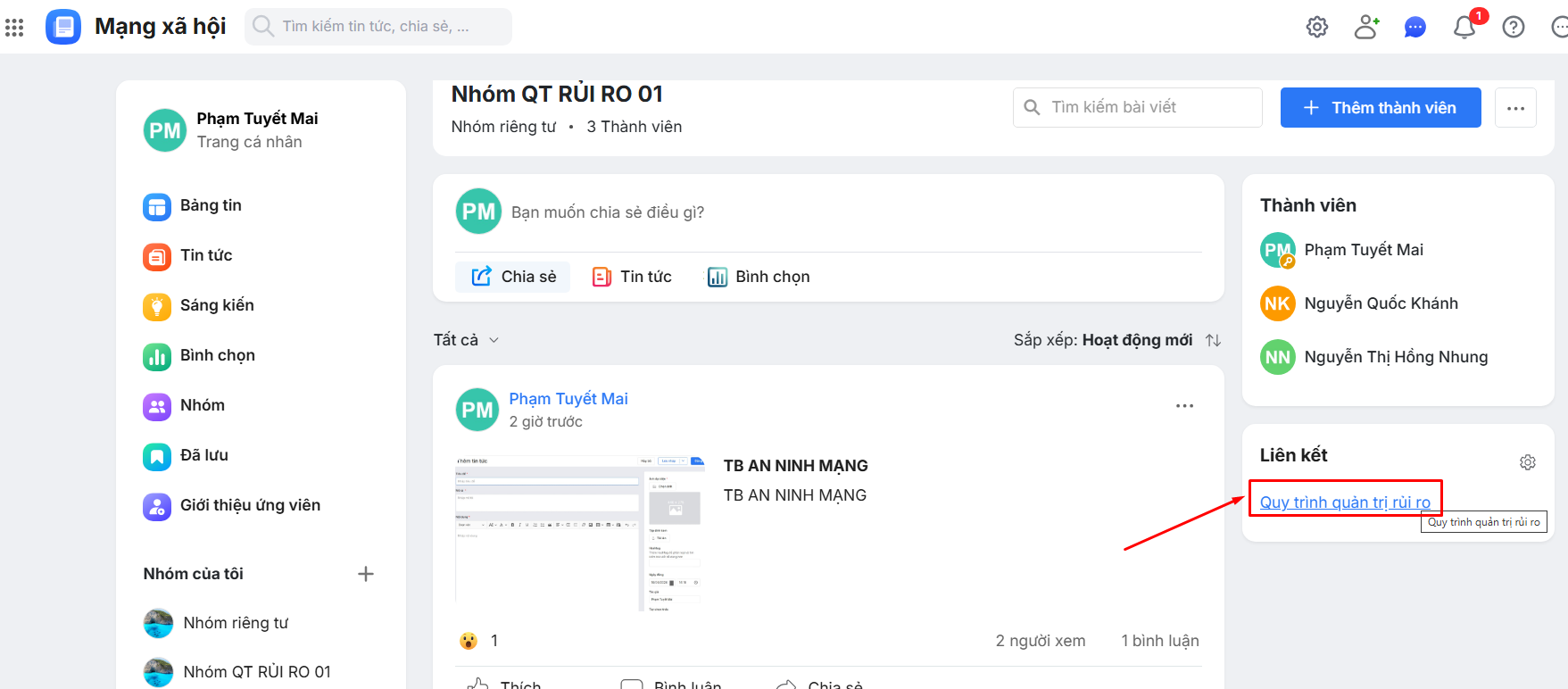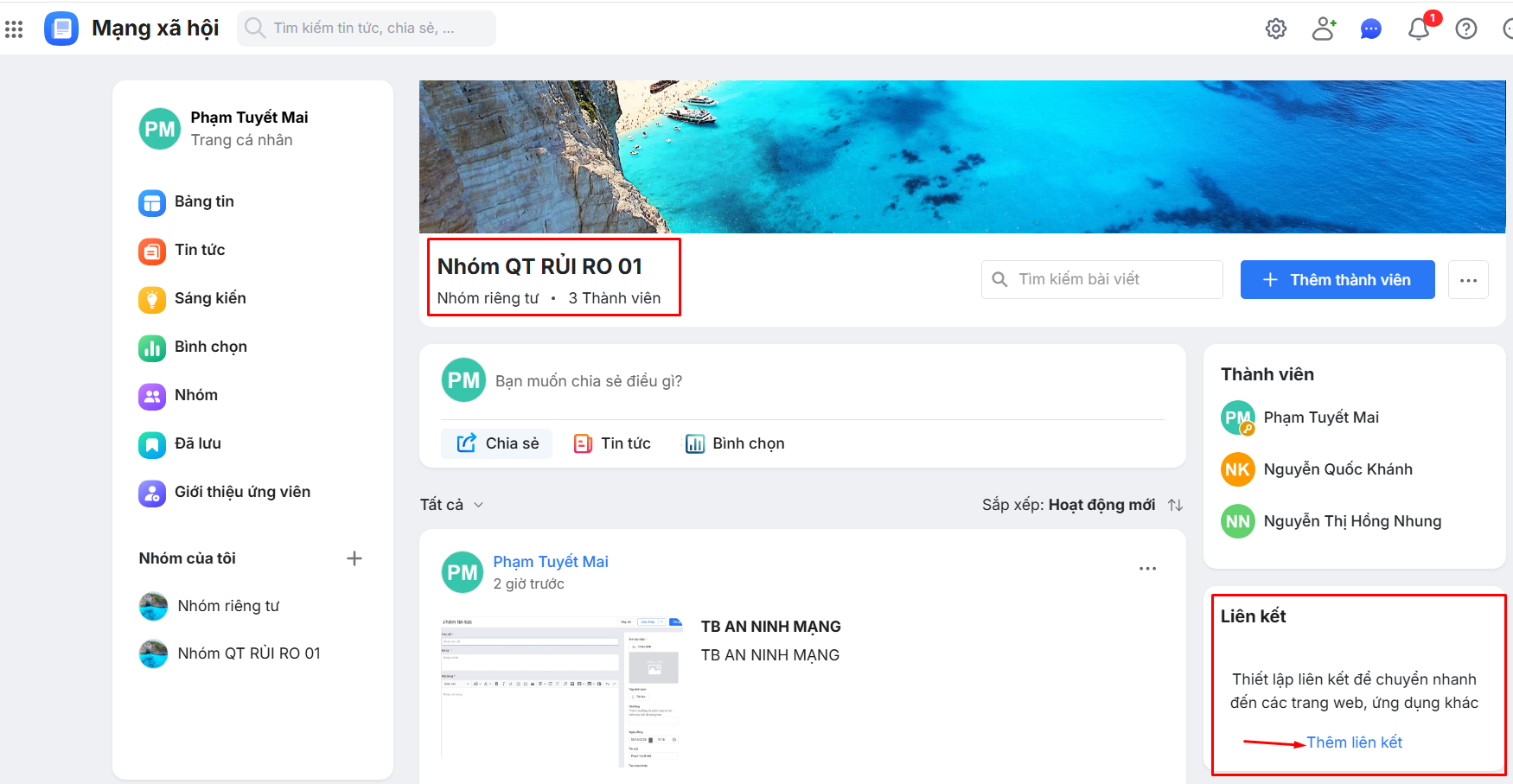 Lưu ý: Quản trị viên của nhóm mới có quyền Thêm/Sửa/Xóa liên kết trong nhóm.
