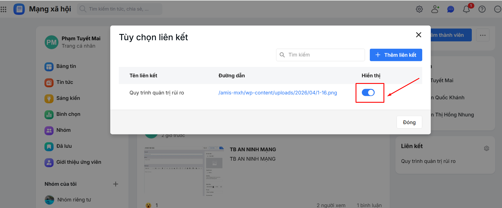 Phạm vi áp dụng: Người dùng tham gia nhóm trên AMIS Mạng xã hội.