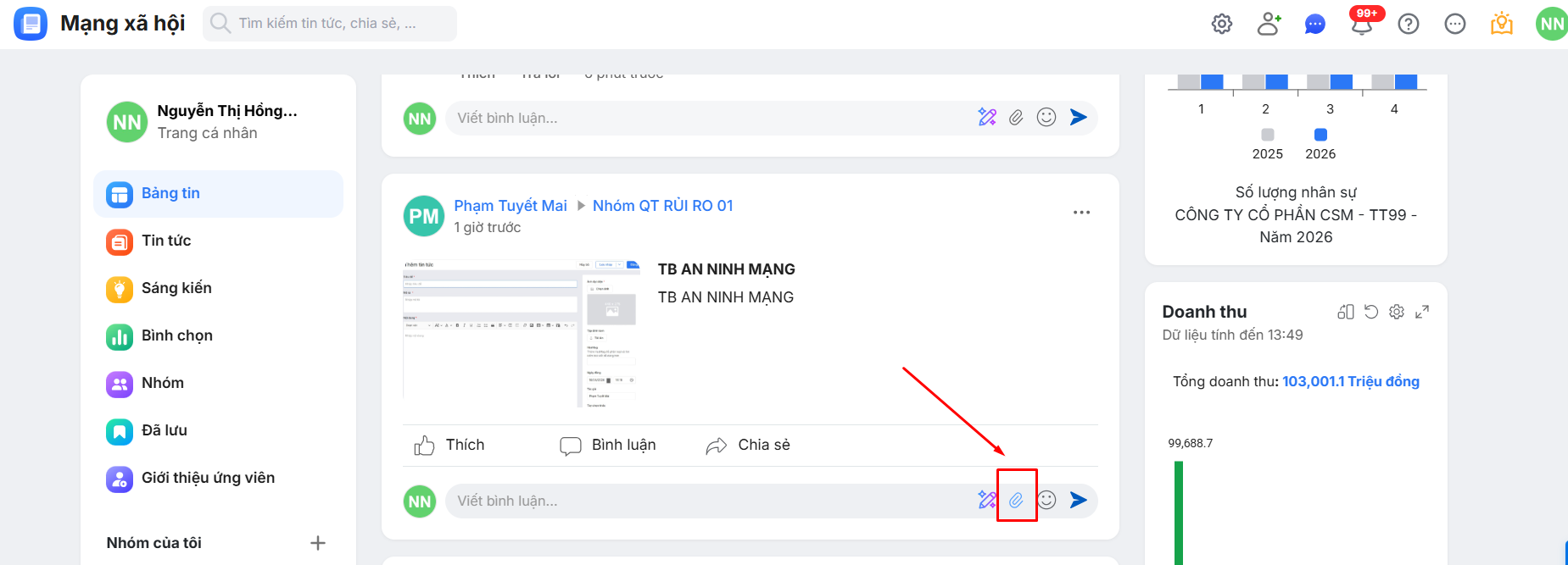 Bước 1: Truy cập vào bài viết cần bình luận\ Chọn biểu tượng đính kèm.