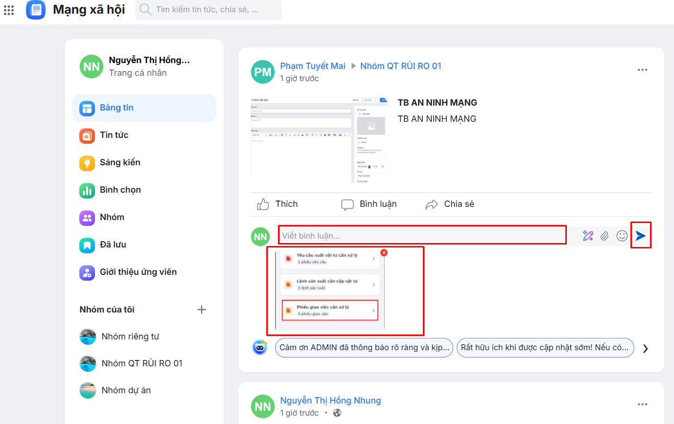 Bài viết giới thiệu tính năng đính kèm hình ảnh khi bình luận, giúp người dùng làm phong phú nội dung trao đổi, tăng tính trực quan và nâng cao hiệu quả tương tác trên AMIS Mạng xã hội.