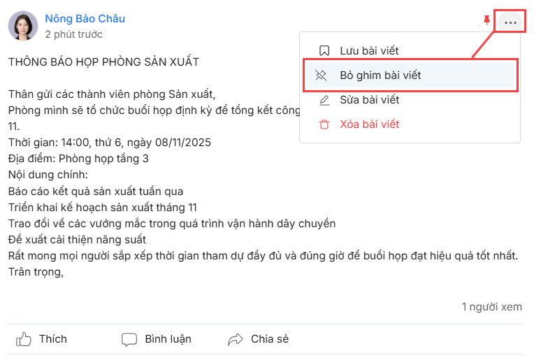 3. Bỏ ghim bài viết