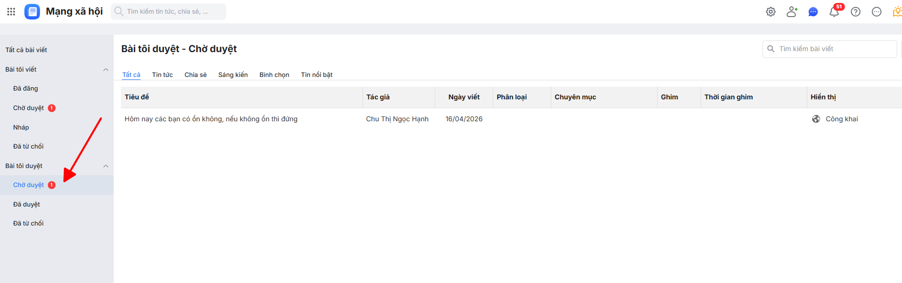 Lưu ý: Người dùng cần được phân quyền Duyệt bài viết để sử dụng tính năng này.
