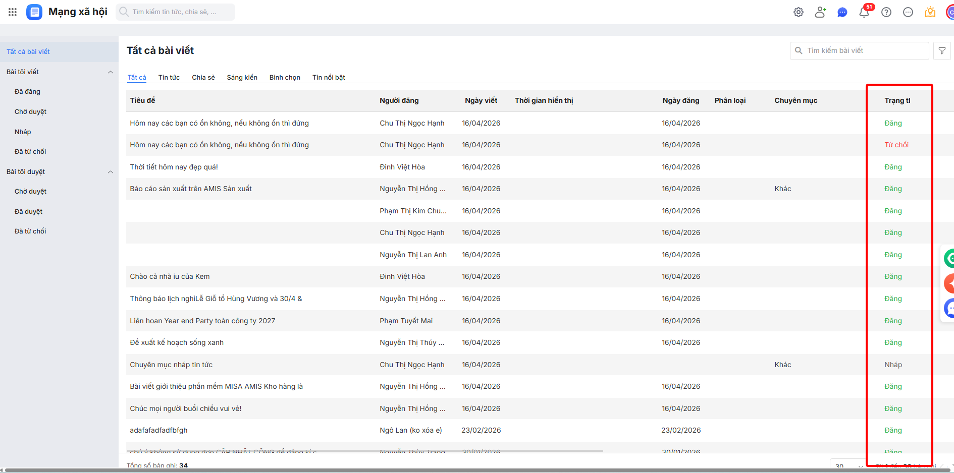 - Phê duyệt, từ chối và xem trạng thái bài viết