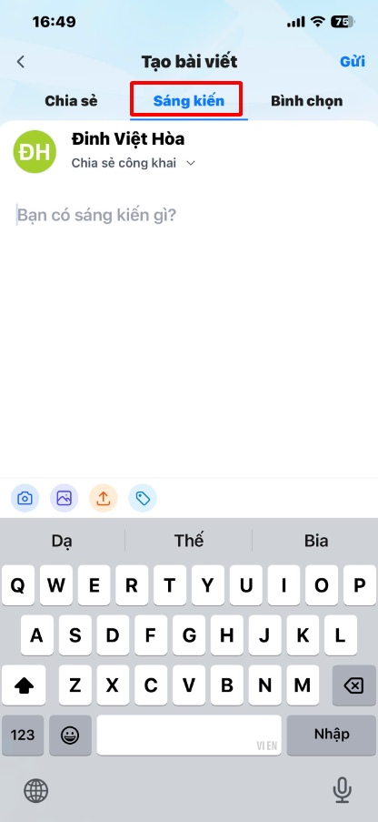 Bước 2: Chọn mục Sáng kiến và điền sáng kiến vào khung.