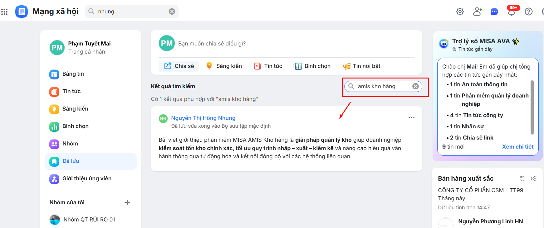 Bài viết hướng dẫn cách tìm kiếm lại các bài viết đã lưu trên AMIS Mạng xã hội, giúp nhanh chóng truy xuất và theo dõi các nội dung quan trọng.
