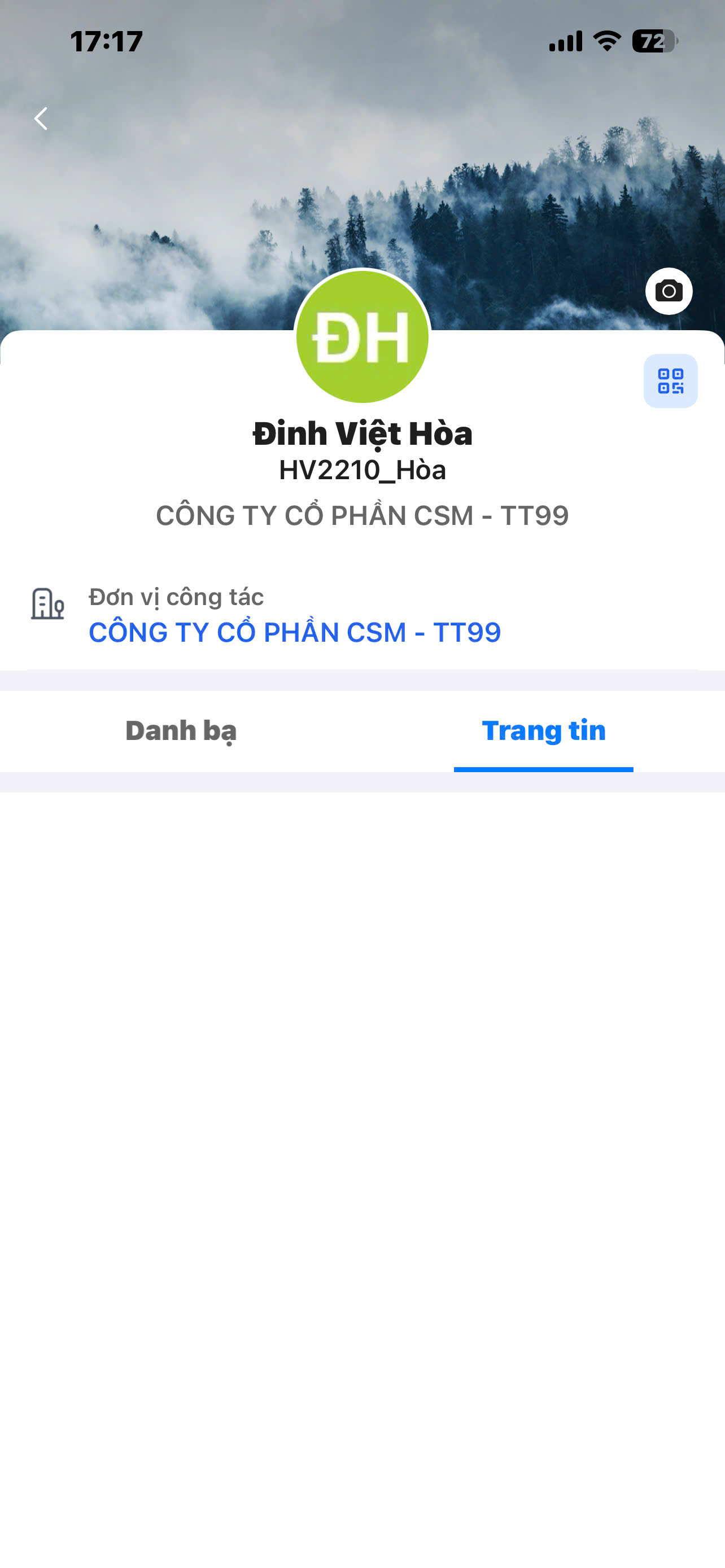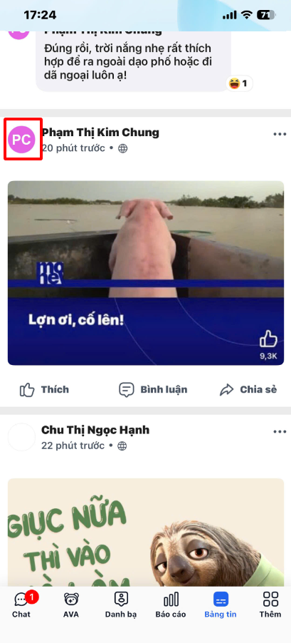 Bước 1: Trên giao diện “Bảng tin”, nhấn vào Ảnh đại diện hoặc Tên của nhân viên muốn xem thông tin để hiển thị giao diện Trang cá nhân của người đó.