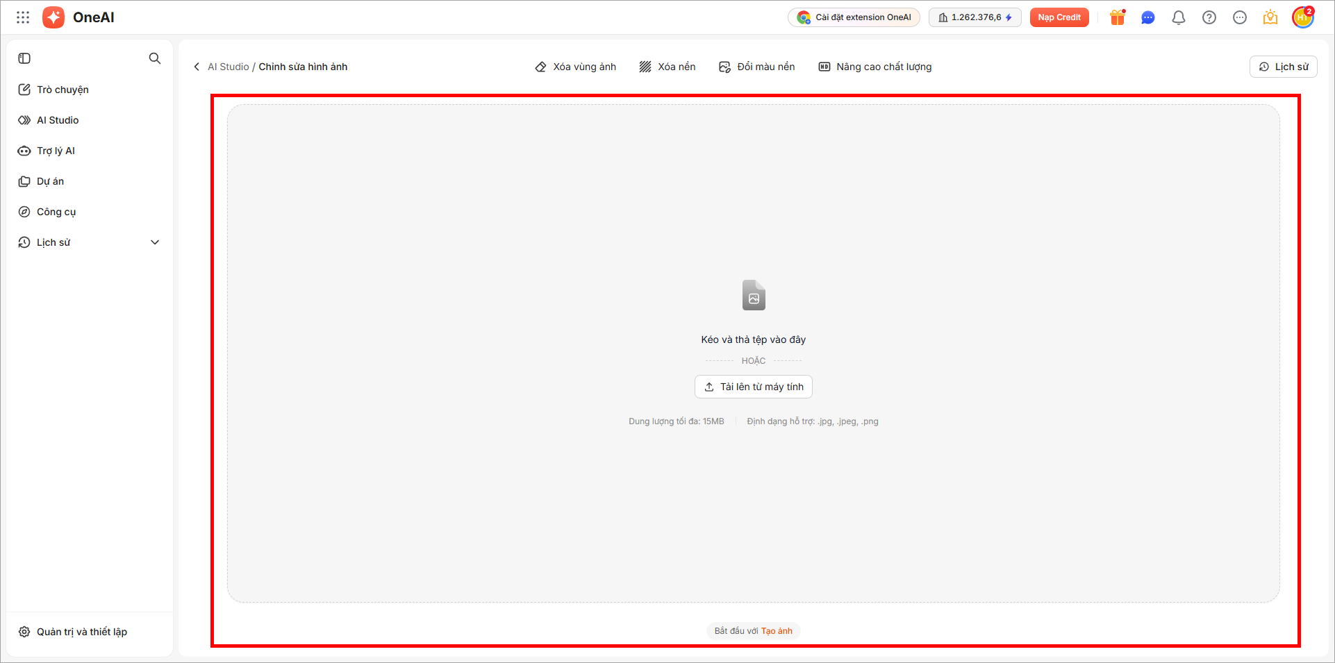 Bước 3: Tải lên hình ảnh từ máy tính hoặc chỉnh sửa từ hình ảnh được tạo bởi công cụ Tạo ảnh của OneAI.