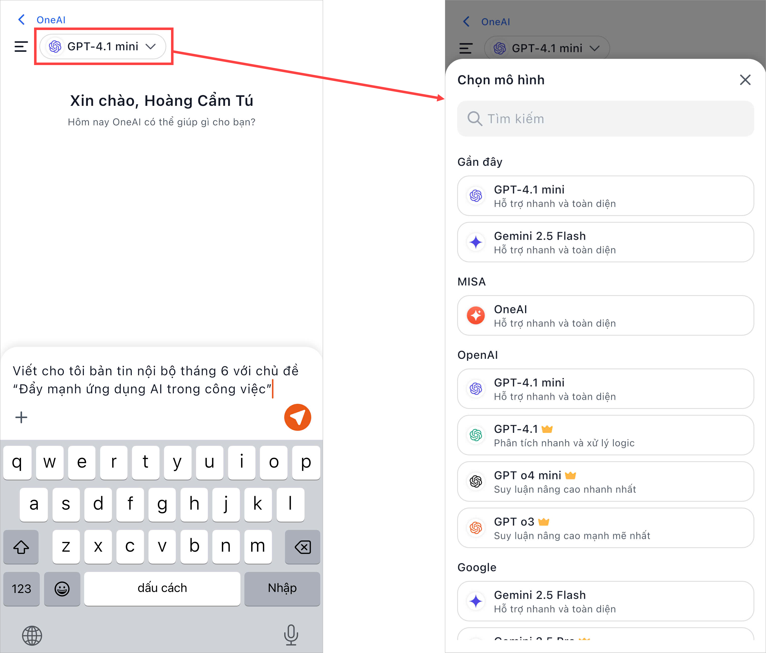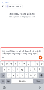 AMIS OneAI phiên bản mobile hỗ trợ người dùng trò chuyện với AI mọi lúc, mọi nơi ngay trên điện thoại, giúp xử lý công việc nhanh chóng và linh hoạt.