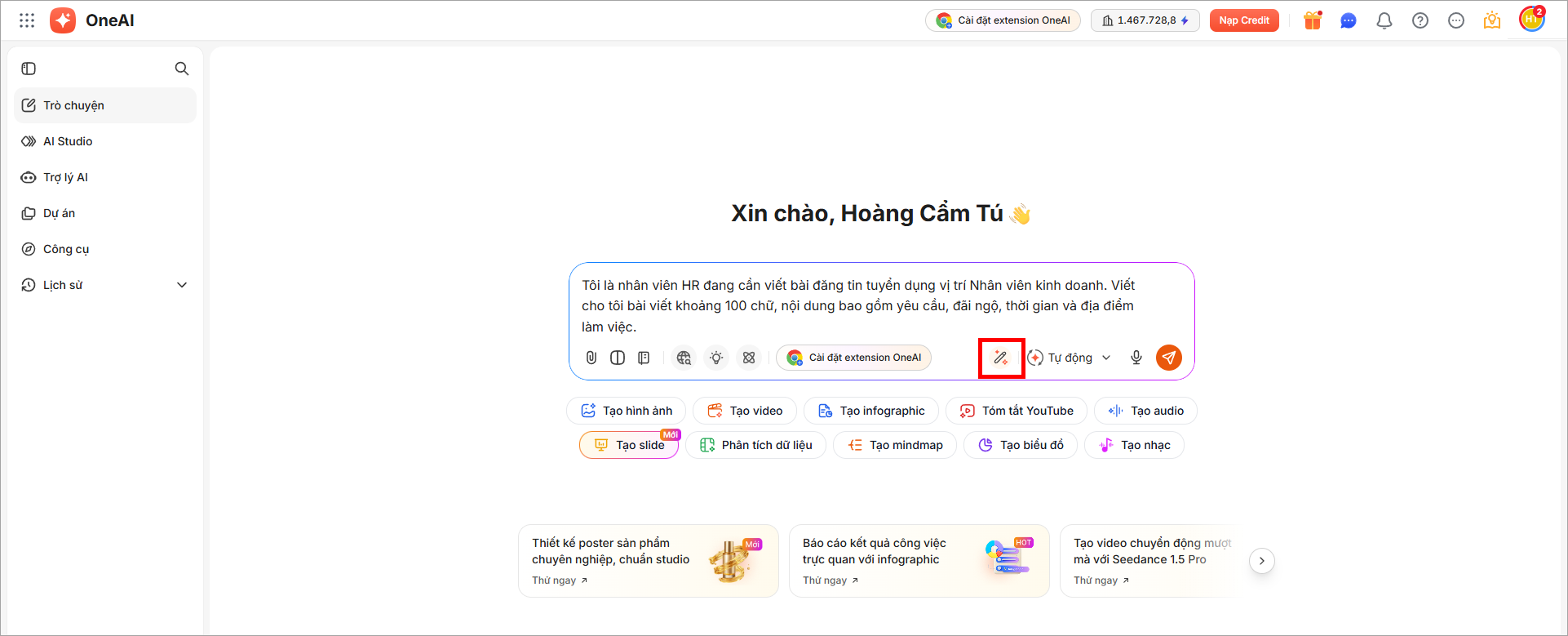 Bước 1: Trên giao diện AMIS OneAI, vào Trò chuyện.