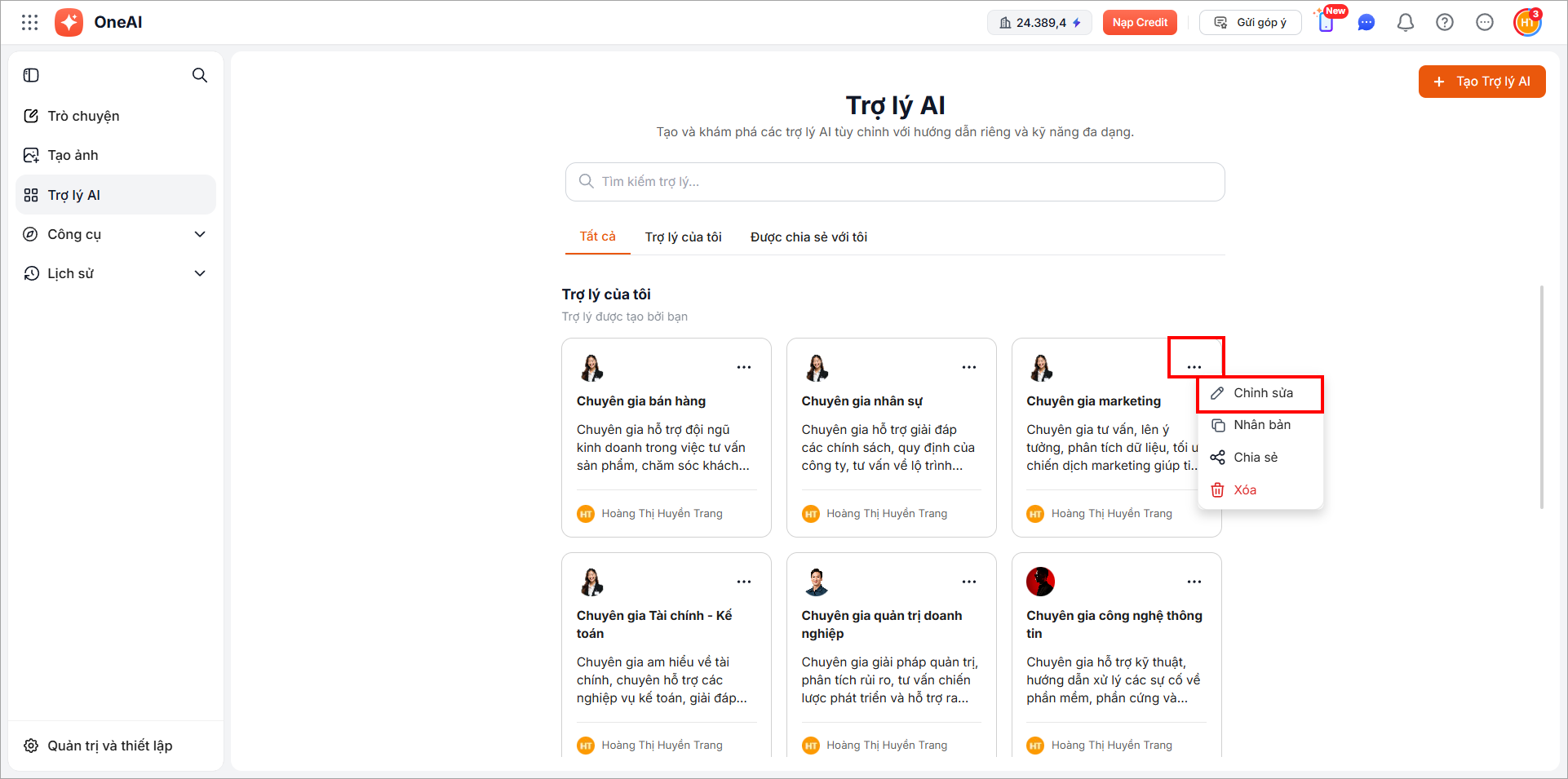5. Danh sách Trợ lý AI