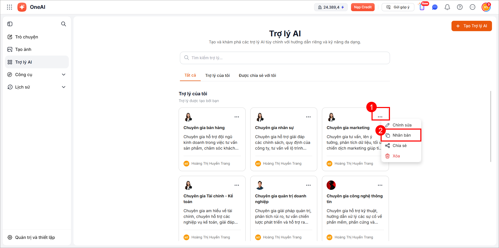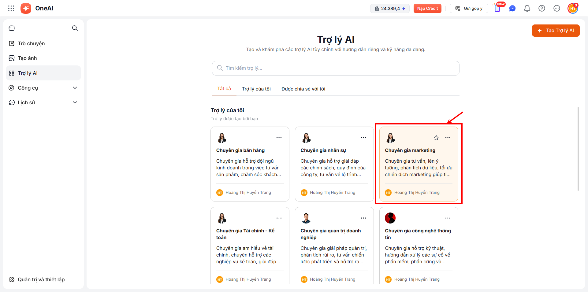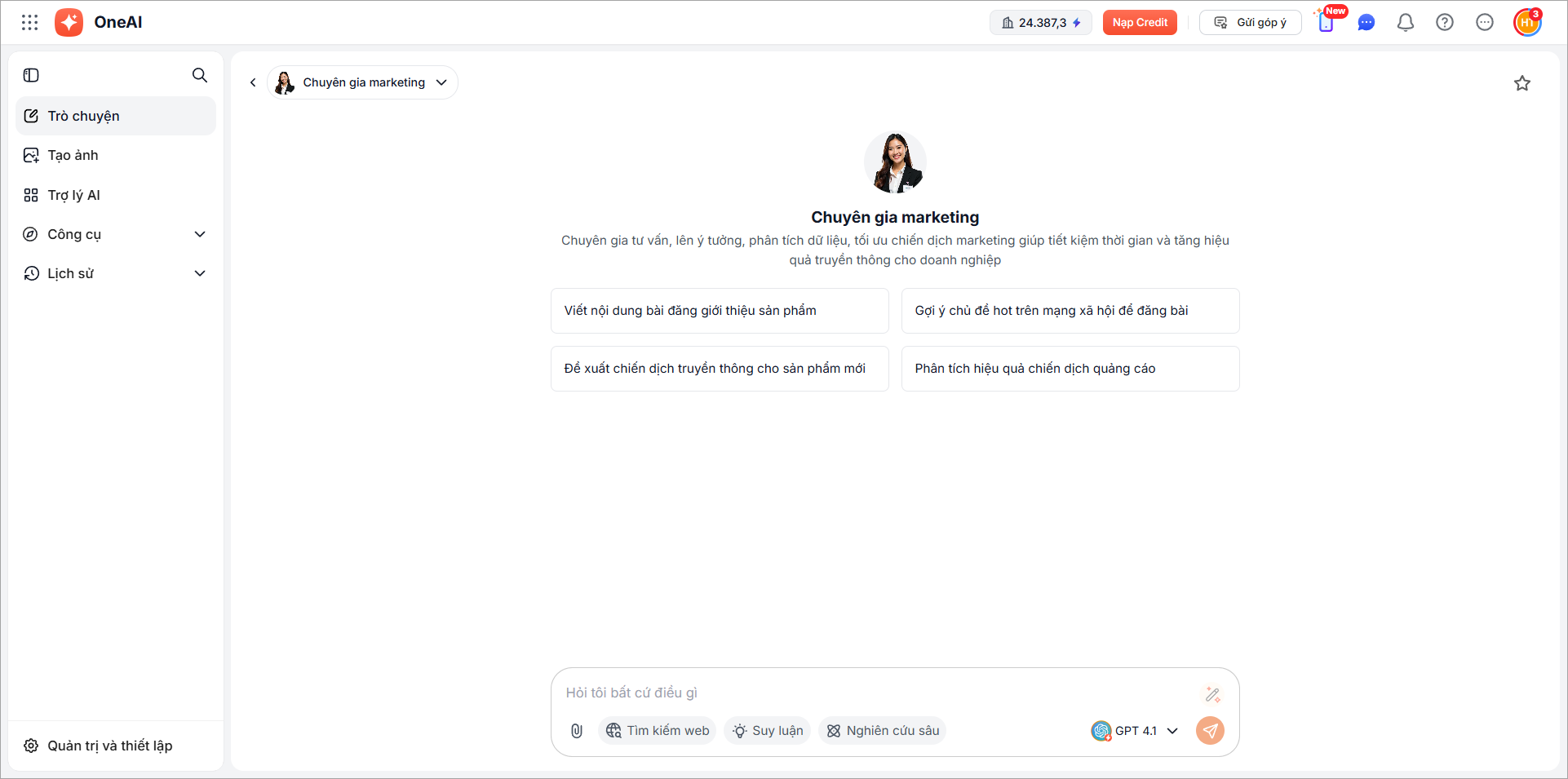 Trên giao diện OneAI, vào Trợ lý AI.
