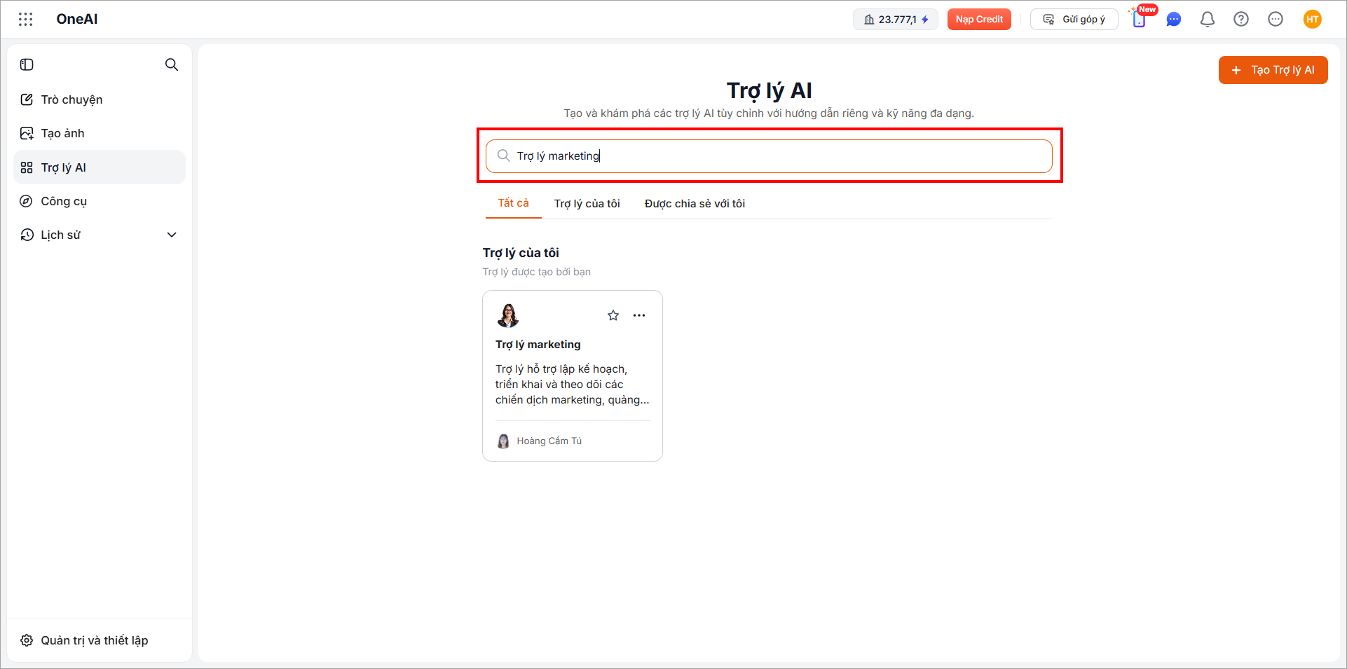 Ở thanh tìm kiếm, nhập tên trợ lý để tìm nhanh trợ lý AI.