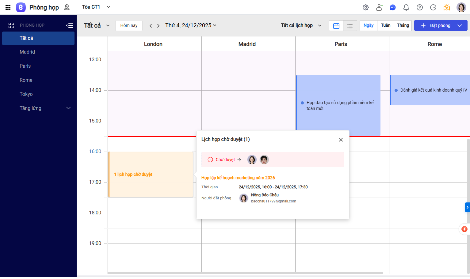 - Tất cả lịch họp tại phòng này: Mọi cuộc họp đều cần phê duyệt.