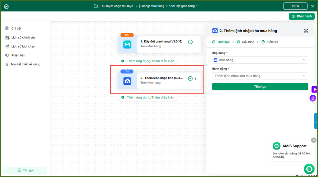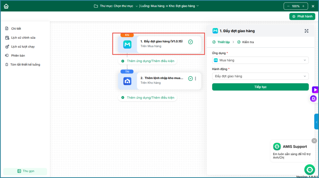 2.1. Thiết lập đồng bộ luồng đợt giao hàng trên AMIS Workflow