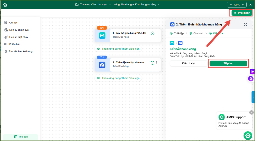 Bước 1: Trên AMIS Workflow\ Thiết lập và phát hành luồng. Xem hướng dẫn cụ thể hơn tại đây.