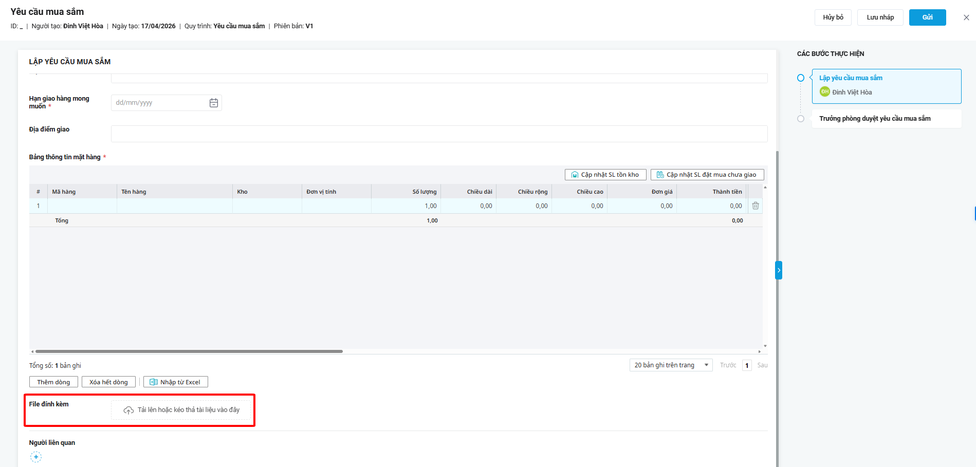 - Vào lượt chạy\File đính kèm\Tải hoặc kéo thả tài liệu vào đây.