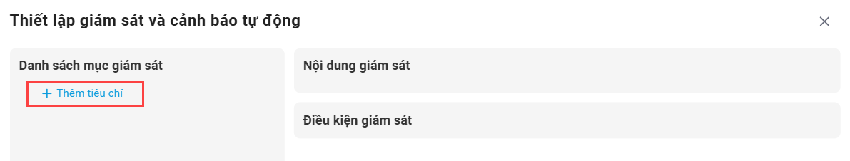 - Nhấn nút Thêm trong mục Tiêu chí giám sát.