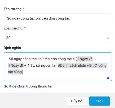 - Mô tả: Giải thích cách AI cần tính toán hoặc lấy dữ liệu cho tiêu chí này. Anh/chị có thể gõ # để chèn các trường dữ liệu có sẵn từ quy trình vào phần mô tả.