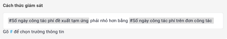 - Sử dụng cú pháp gõ # để chèn các Tiêu chí giám sát đã tạo ở trên hoặc các trường dữ liệu khác của quy trình.