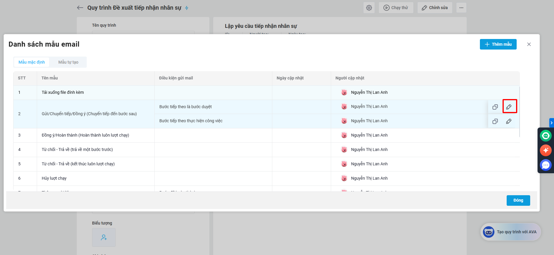 Bước 2: Tại Danh sách mẫu email, nhấn Sửa, chỉnh sửa lại theo ý muốn.