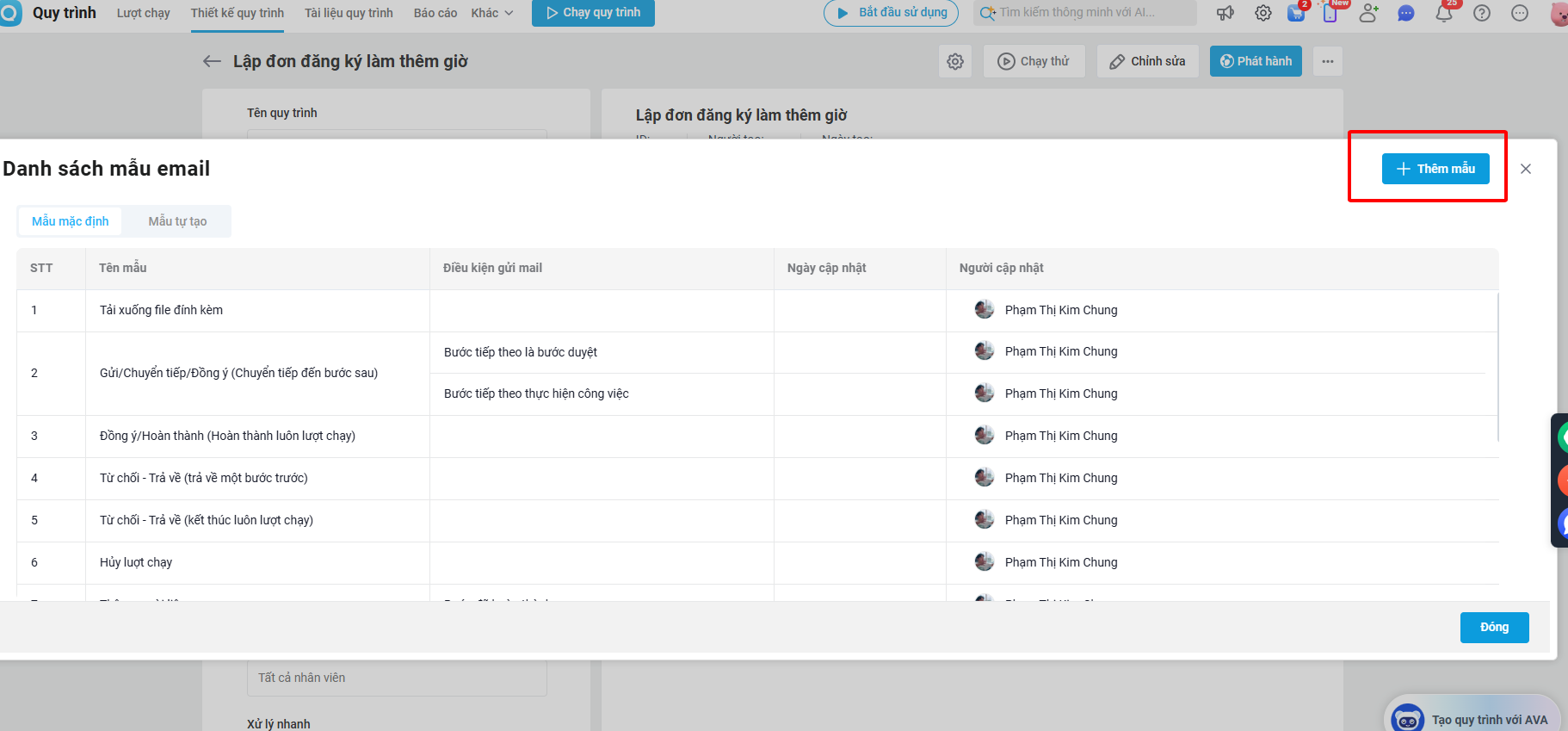 2.1. Chỉnh sửa thiết lập mẫu mail mặc định