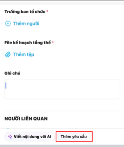 • Nhập yêu cầu chi tiết vào ô Thêm yêu cầu.