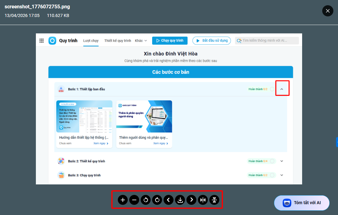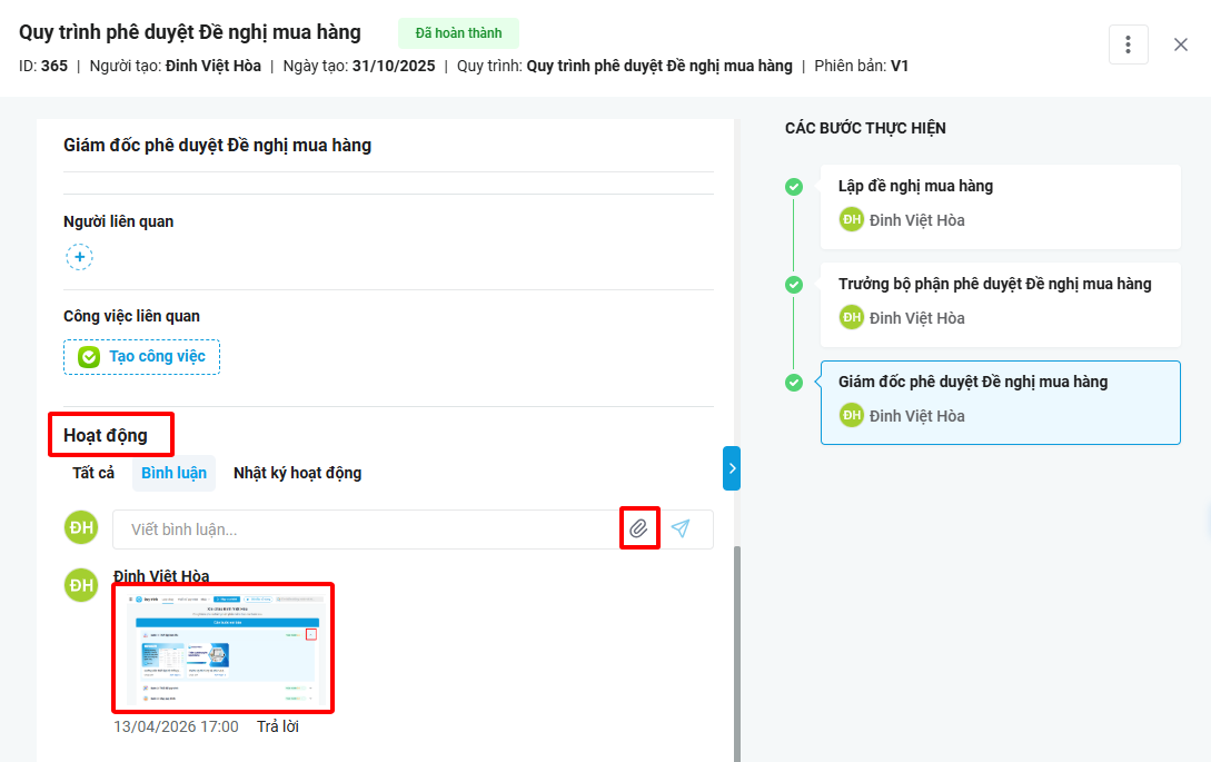 Bước 1: Trên giao diện Quy trình, vào một lượt chạy bất kỳ có bình luận gắn hình ảnh.