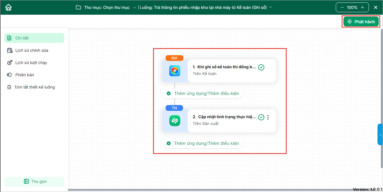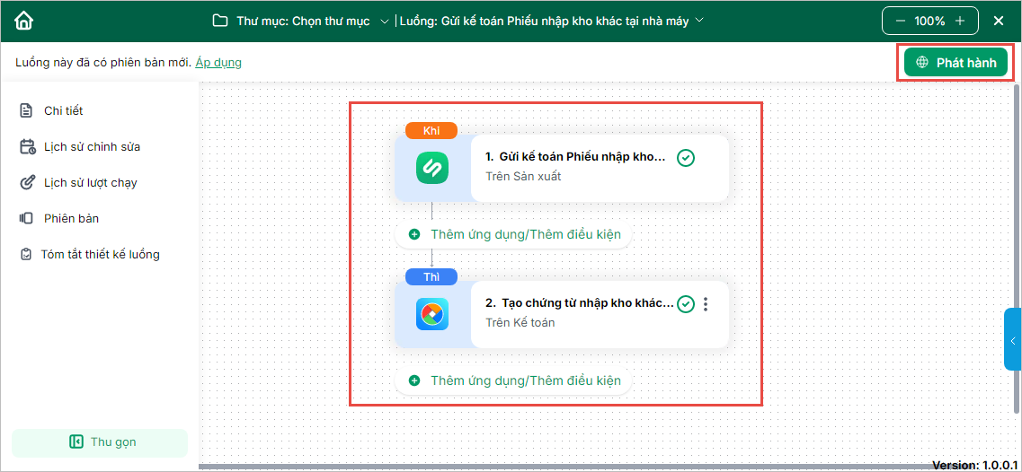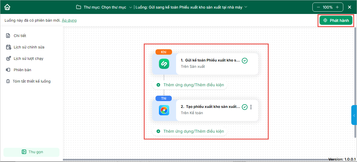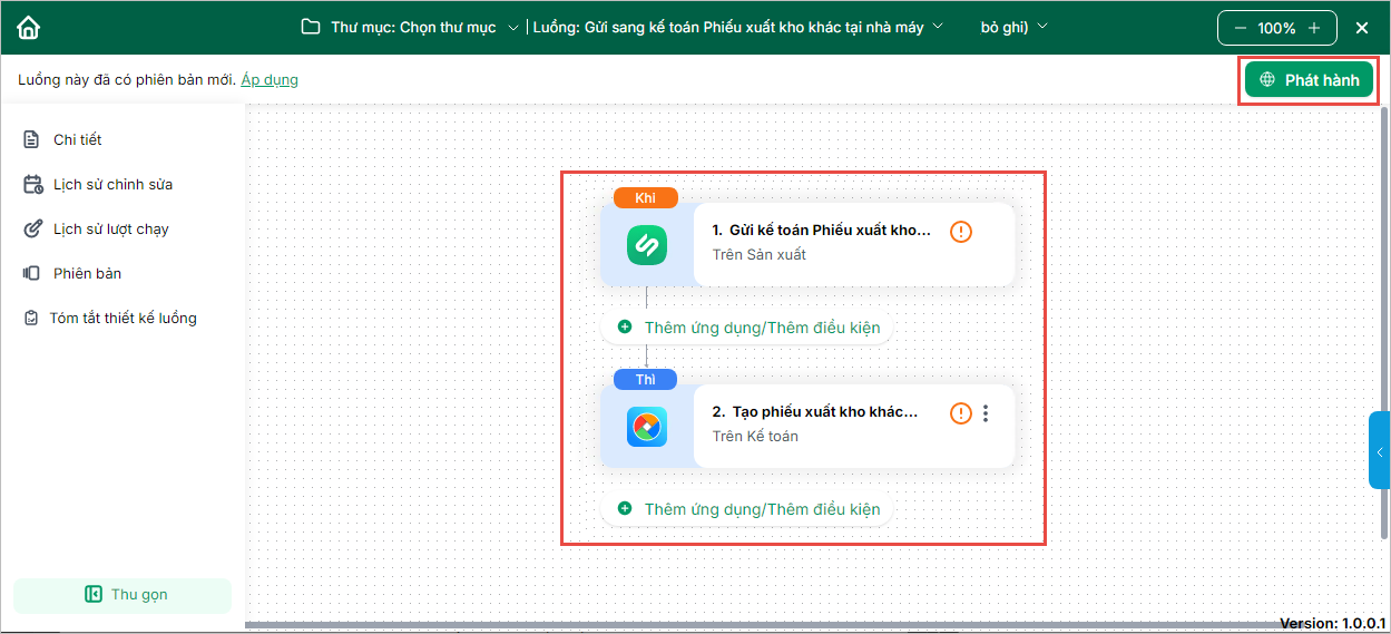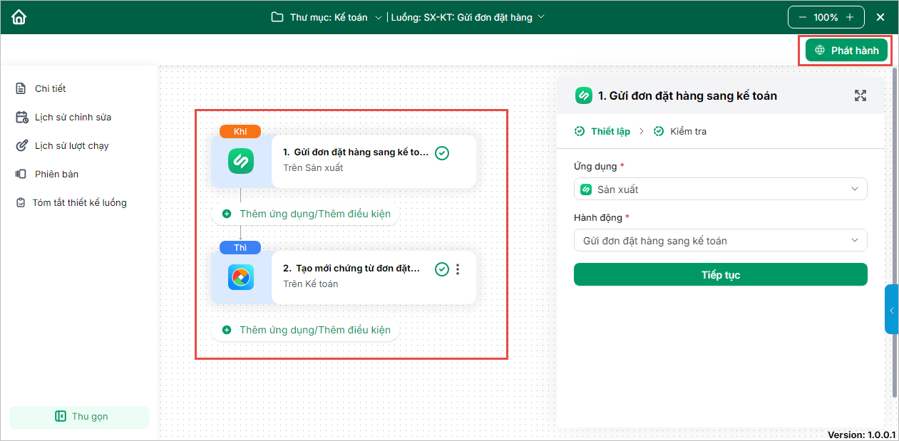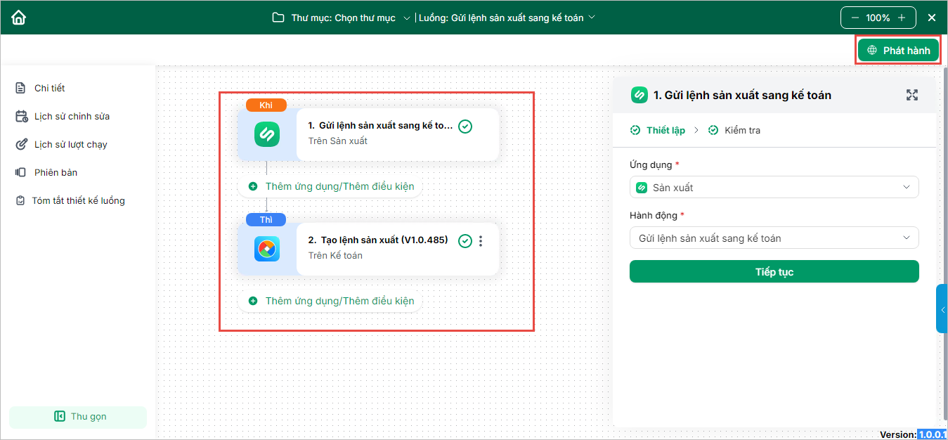 Bước 1: Thiết lập và phát hành luồng trên AMIS Workflow