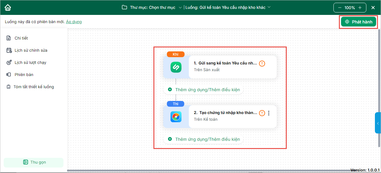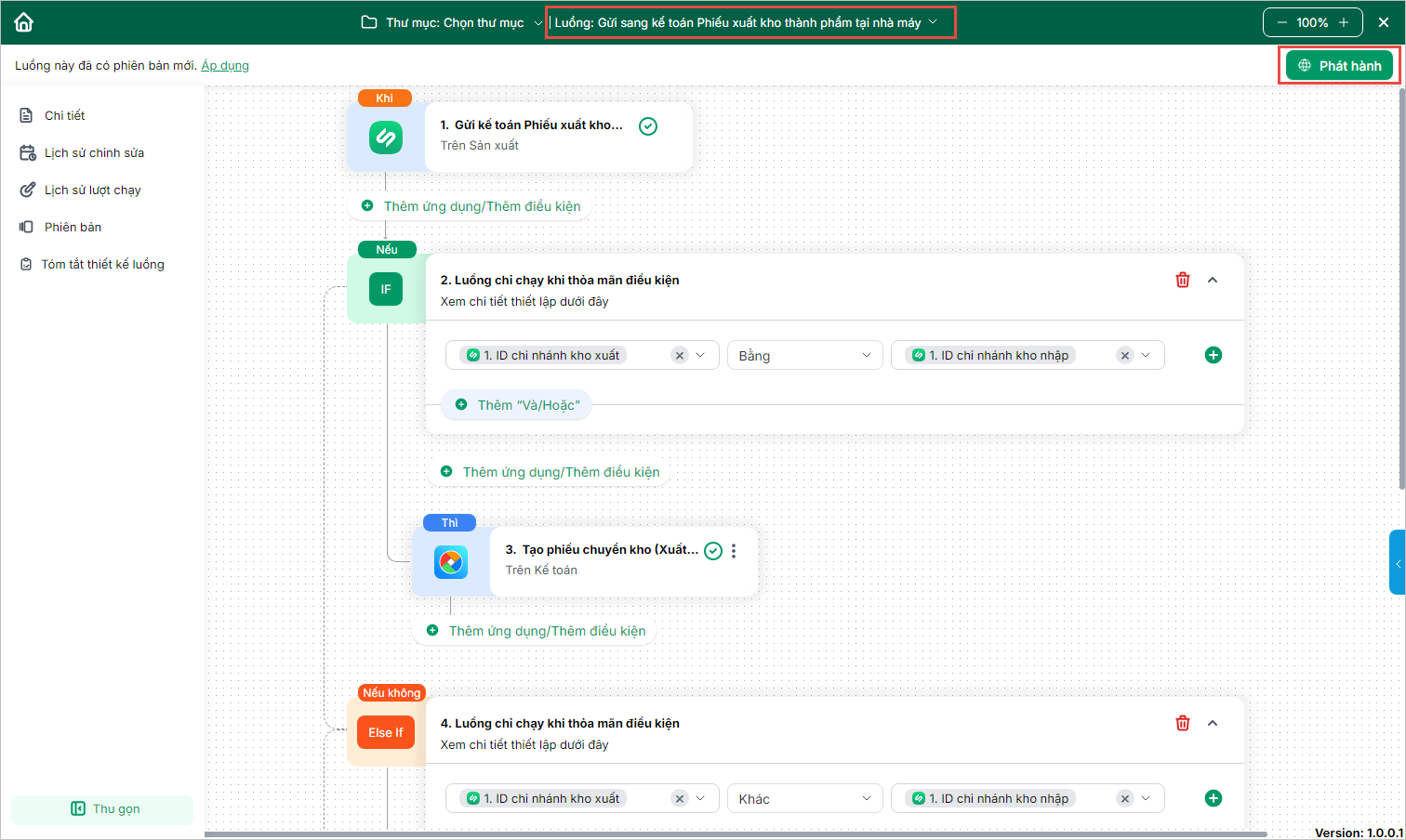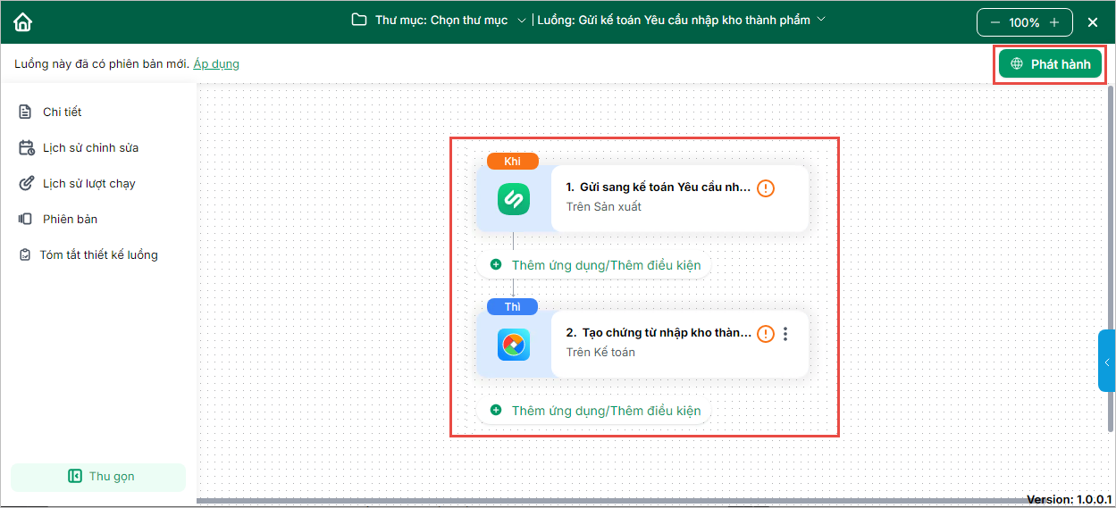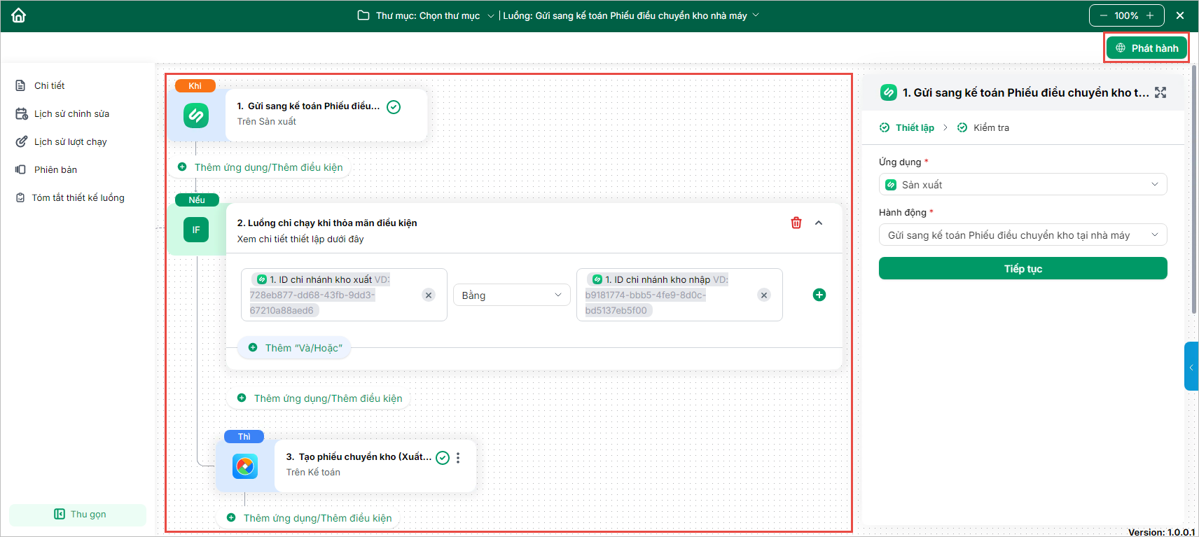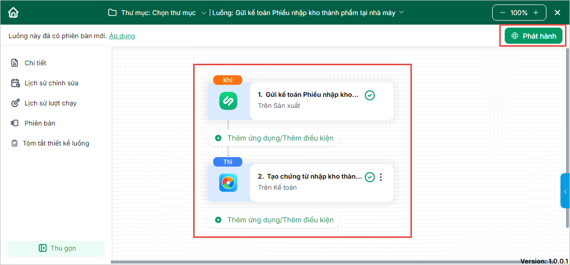 Bước 1: Thiết lập và phát hành luồng trên AMIS Workflow
