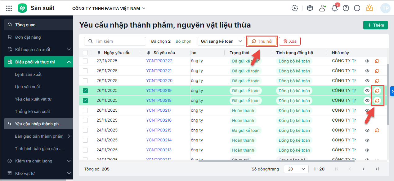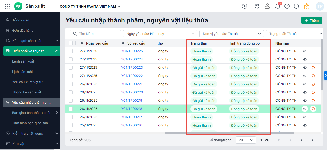 2.6. Đồng bộ yêu cầu nhập thành phẩm sang AMIS Kế toán