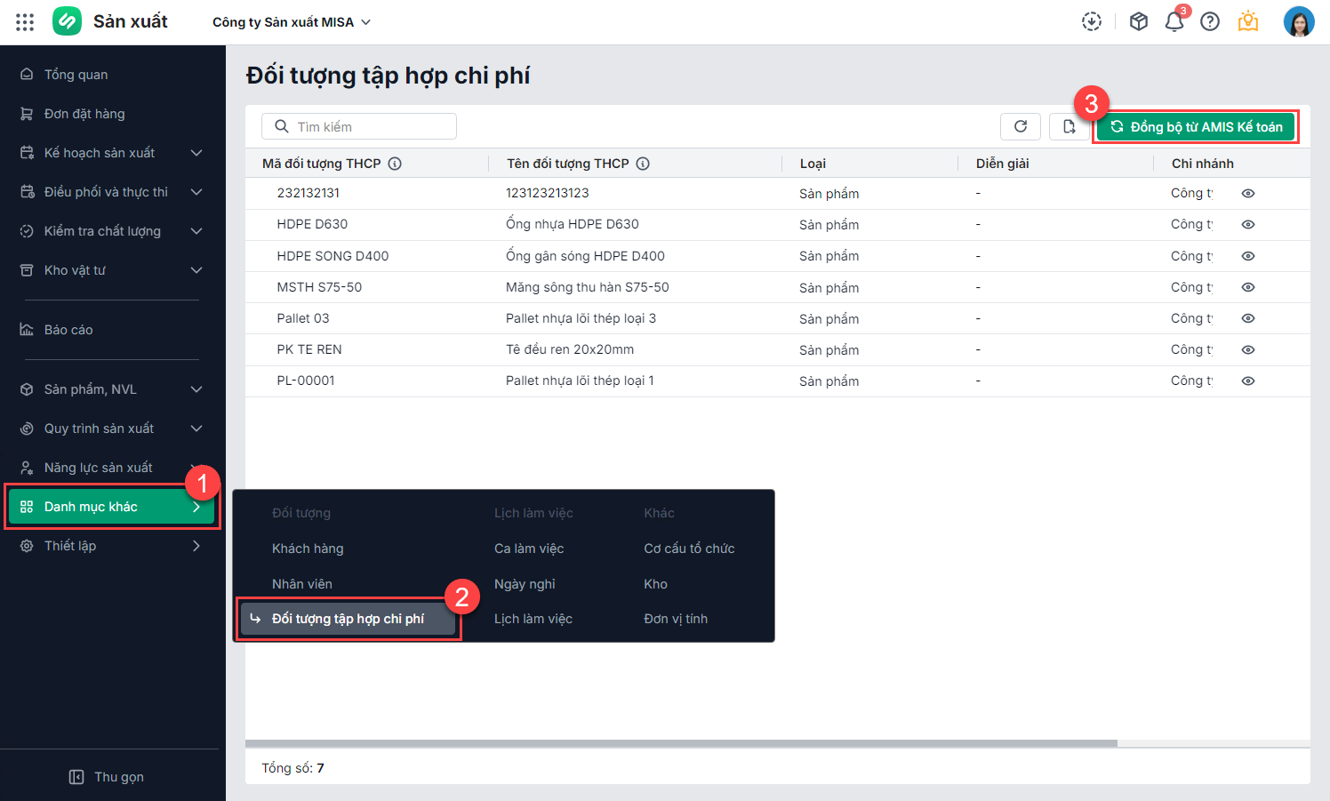 • Dữ liệu từ danh mục Đối tượng tập hợp chi phí trên AMIS Kế toán sẽ được tự động cập nhật vào chương trình.