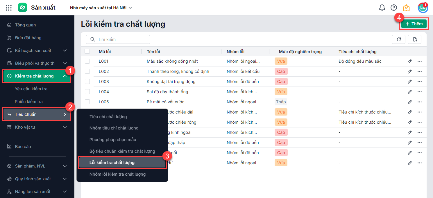 1. Thêm danh mục Lỗi kiểm tra chất lượng