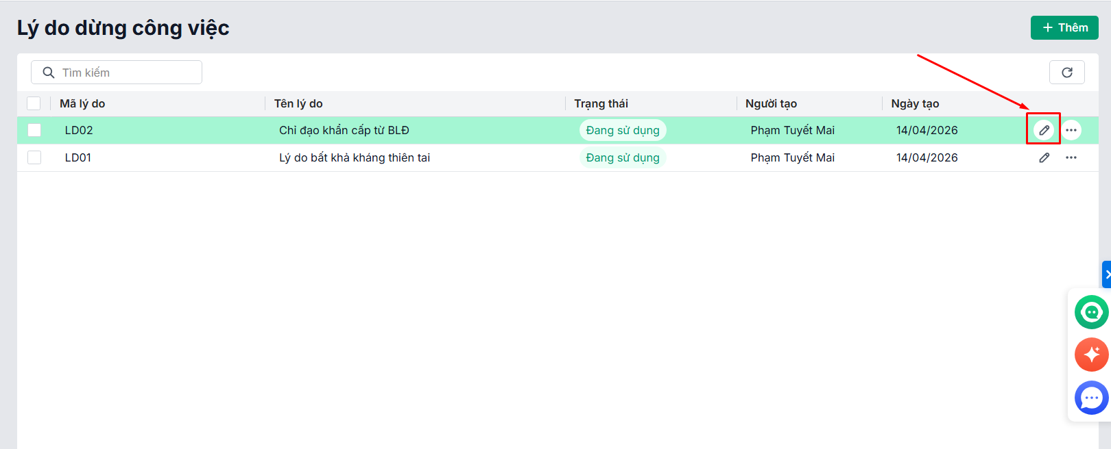 - Hướng dẫn thêm mới lý do dừng công việc.