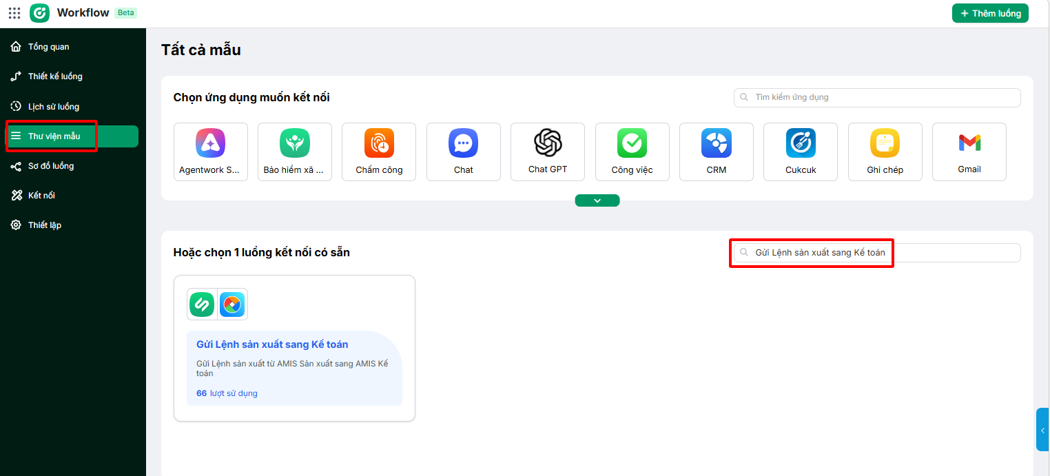 Bước 1: Trên AMIS Workflow, vào Thư viện mẫu