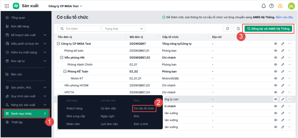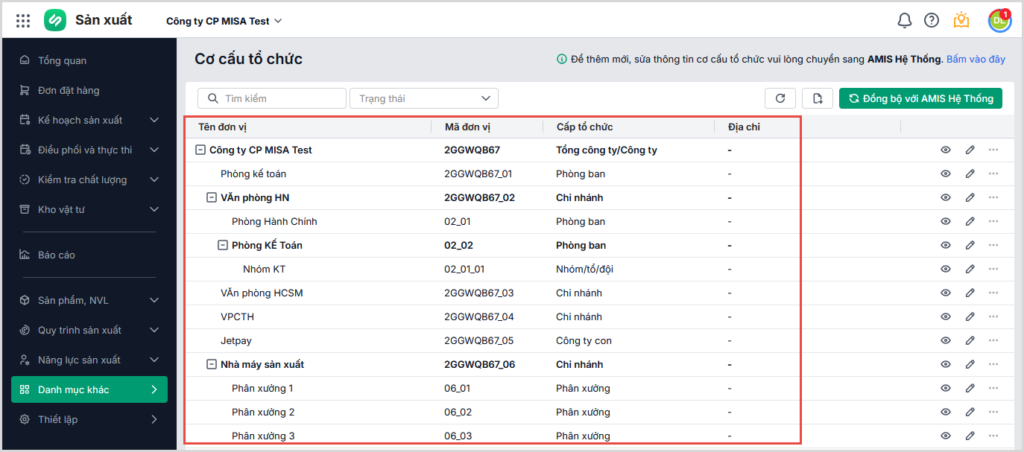 Hướng dẫn quản lý danh mục cơ cấu tổ chức để quản lý hoạt động sản xuất theo từng chi nhanh, phòng ban, bộ phận…