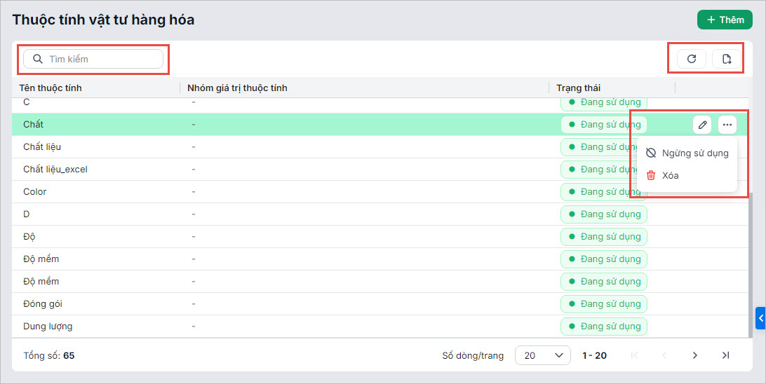 • Sửa/Xóa/Ngừng sử dụng thuộc tính