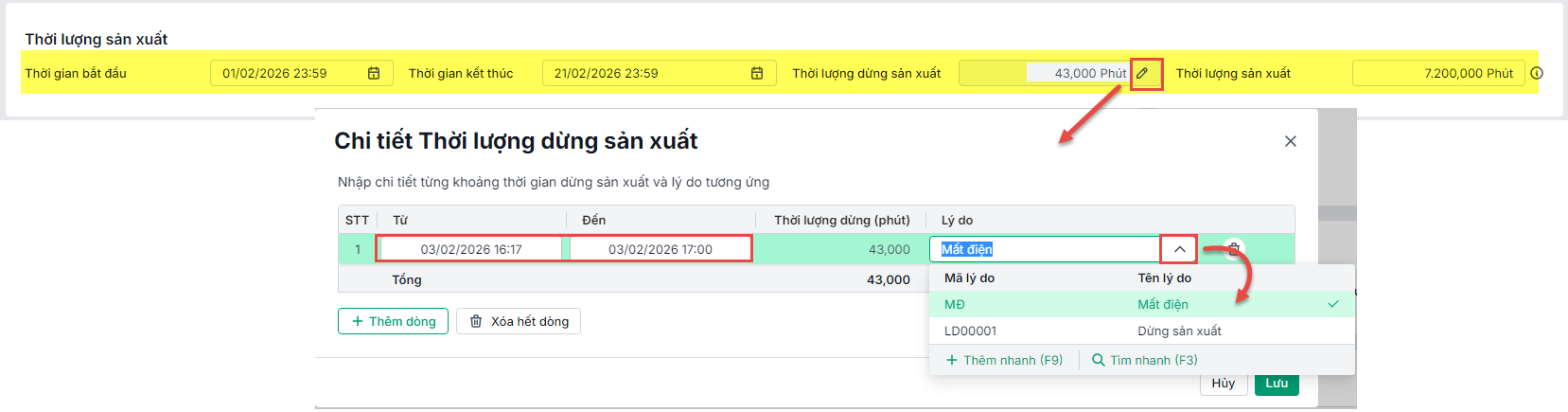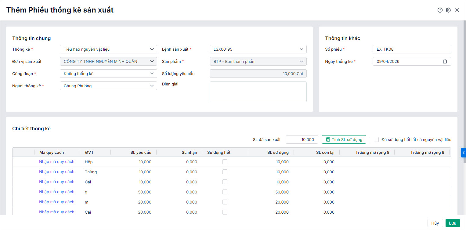 Sau khi Lưu, phiếu sẽ được thêm vào danh sách “Phiếu thống kê sản xuất”, có thể.