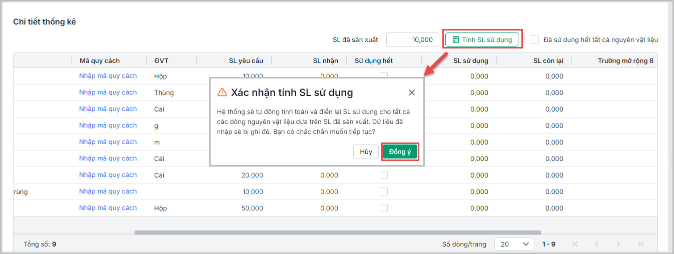 - Lập phiếu thống kê tiêu hao nguyên vật liệu: ghi nhận lượng NVL thực tế sử dụng, kiểm soát so với định mức, phát hiện hao hụt, tính giá thành