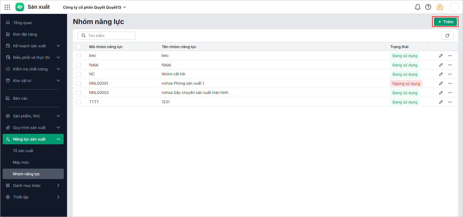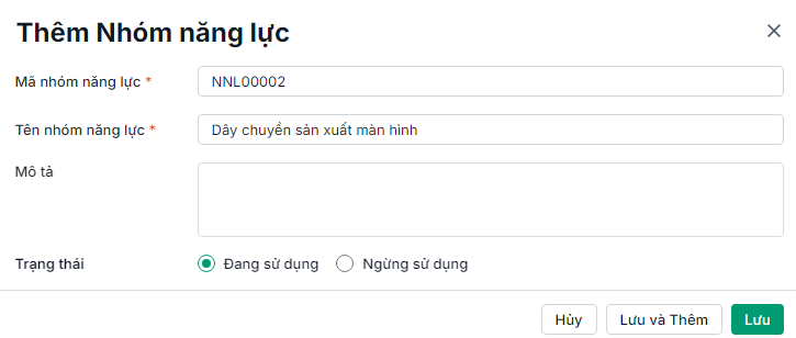 - Trên danh sách nhóm năng lực, nhấn Thêm: